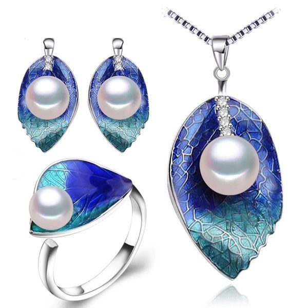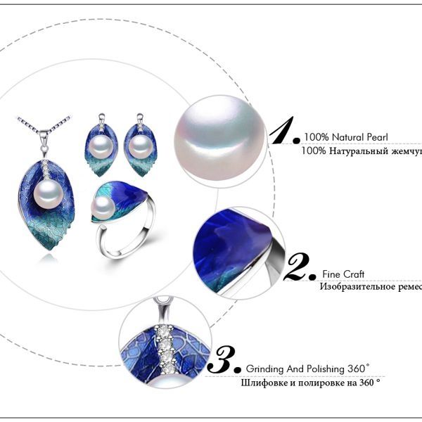Този приказен комплект включва колие, обеци и пръстен във формата на листа инкрустирани с кристали Сваровски и естествена перла в средата. Металната част е от висококачествена бижутерийна сплав /не съдържа никел/ със срен