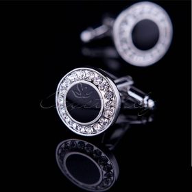 Идеален подарък за мъж! Класически копчета за ръкавели в триъгълна форма с красив, фасетиран с черен кристал в средата подчертан от множество бели кристалчета. Подходящи за всеки повод.
