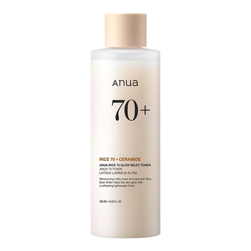 ANUA Rice 70 Glow Milky Toner е натурален млечен тоник за лице, формулиран с 71% вода от оризови трици, който озарява, хидратира и възстановява естествената бариера на кожата. Този продукт е част от органичната и био козметика, създадена за всеки, който търси нежна, натурална грижа за кожата без парабени, сулфати или изкуствени аромати.